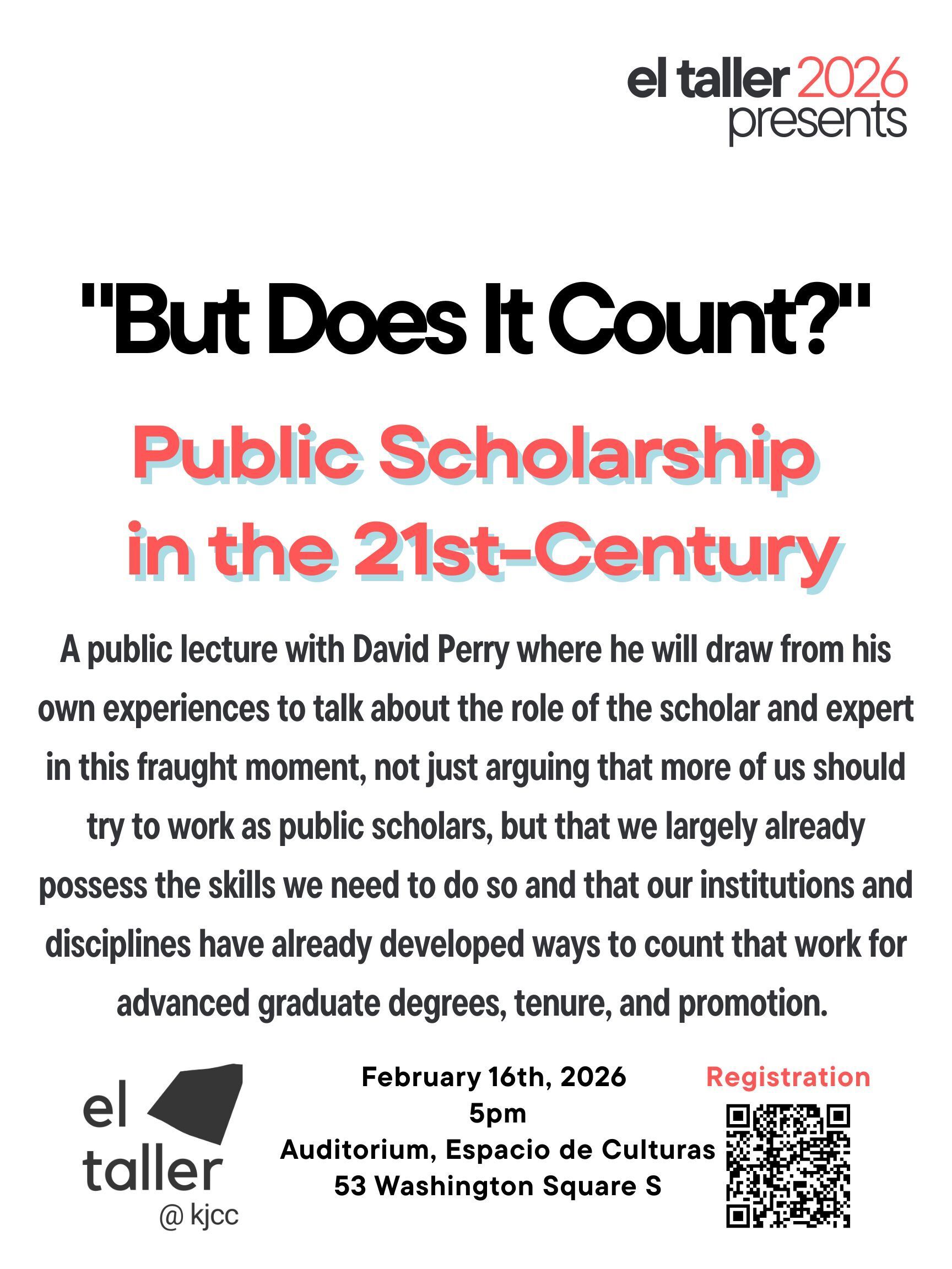 Please join us on Monday, February 16 for an in person workshop and public lecture with historian and public scholar David M. Perry: